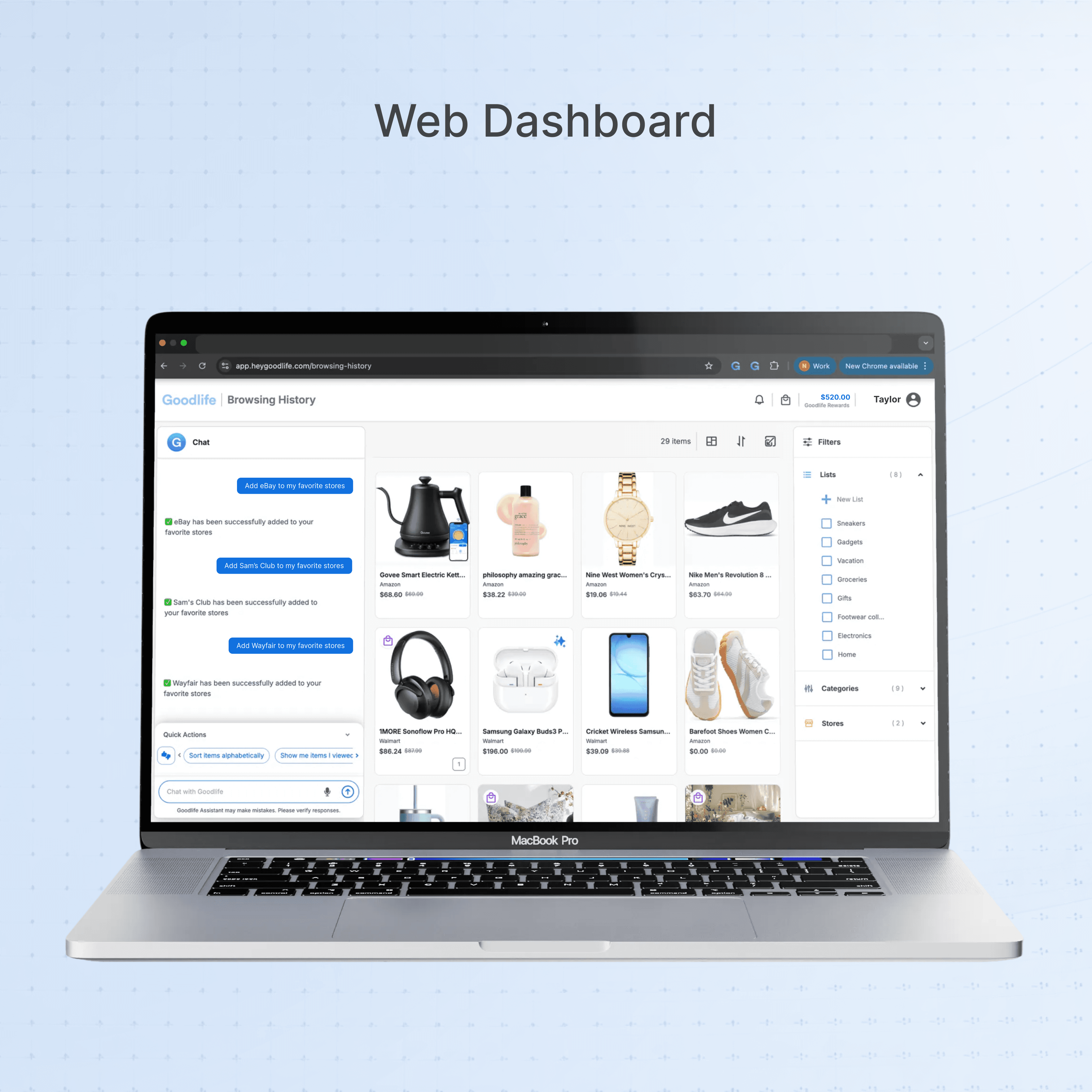 Goodlife remembers your shopping preferences and relationships, lists, and products viewed across all stores to give you what you need, when you need it.